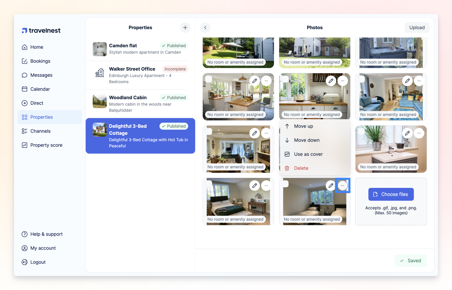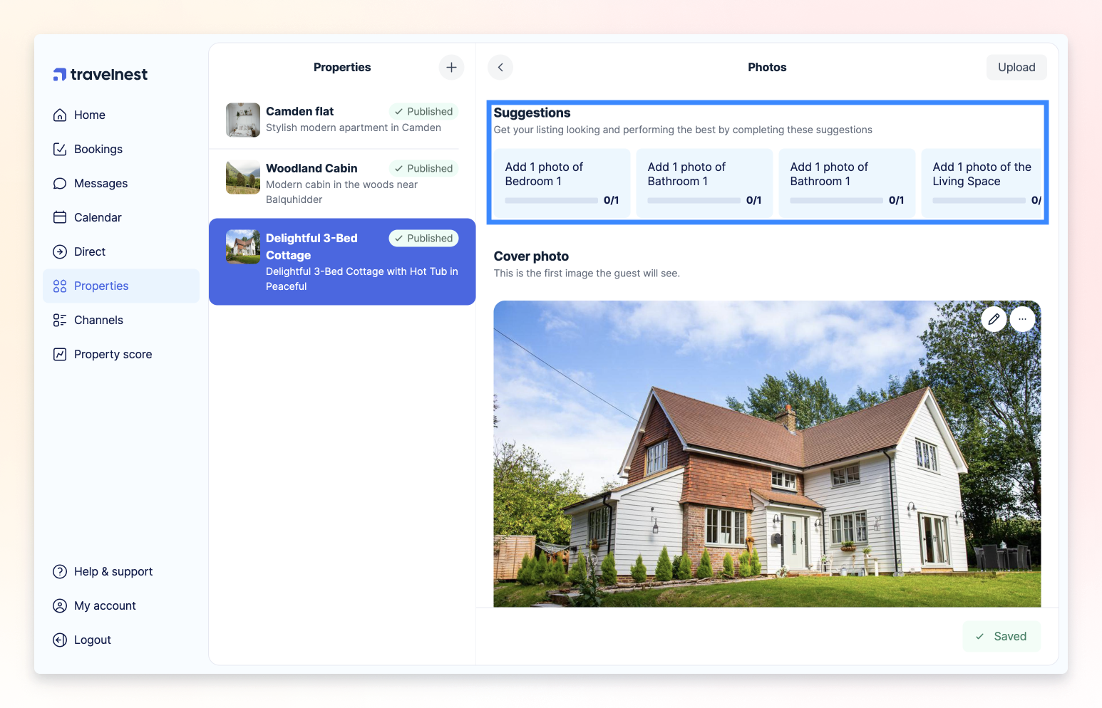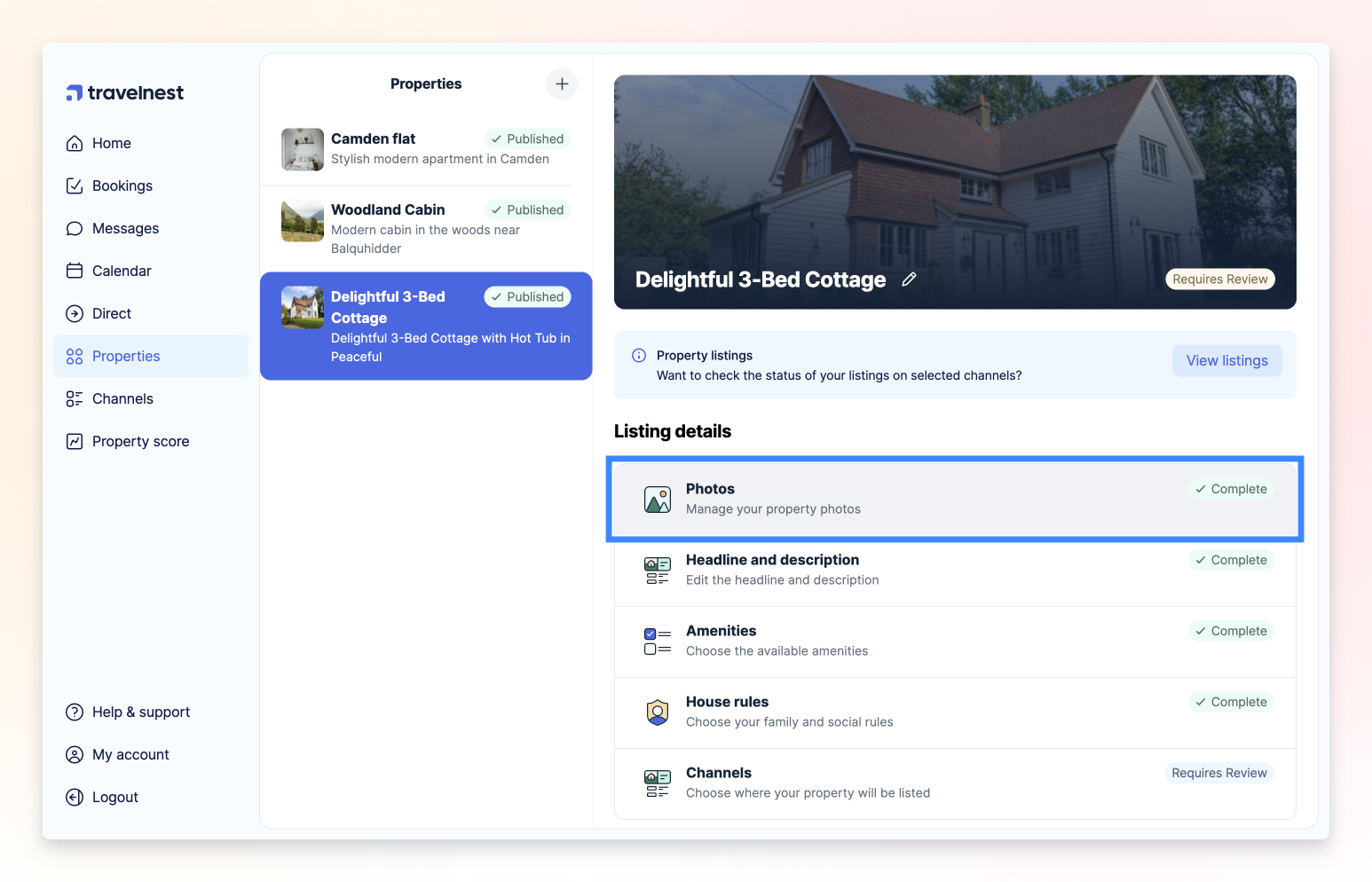 A strong set of photos improves your content score and helps your listing perform better across all booking channels. Listings with higher scores attract more interest and convert more bookings. For more tips, see our Photo Guide.
