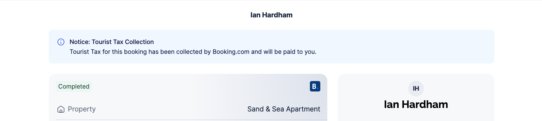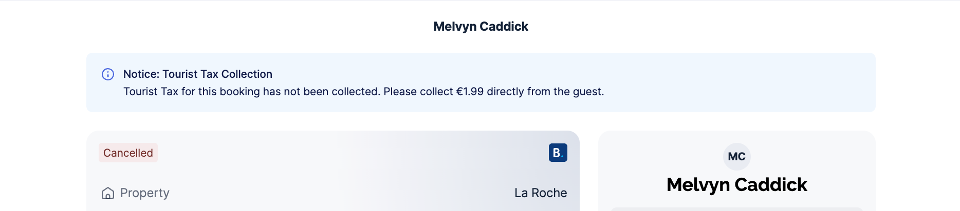 - Booking.com does not collect the tax, but notifies us to do so. You will see a message at the top of the booking details indicating how much tax needs to be collected.