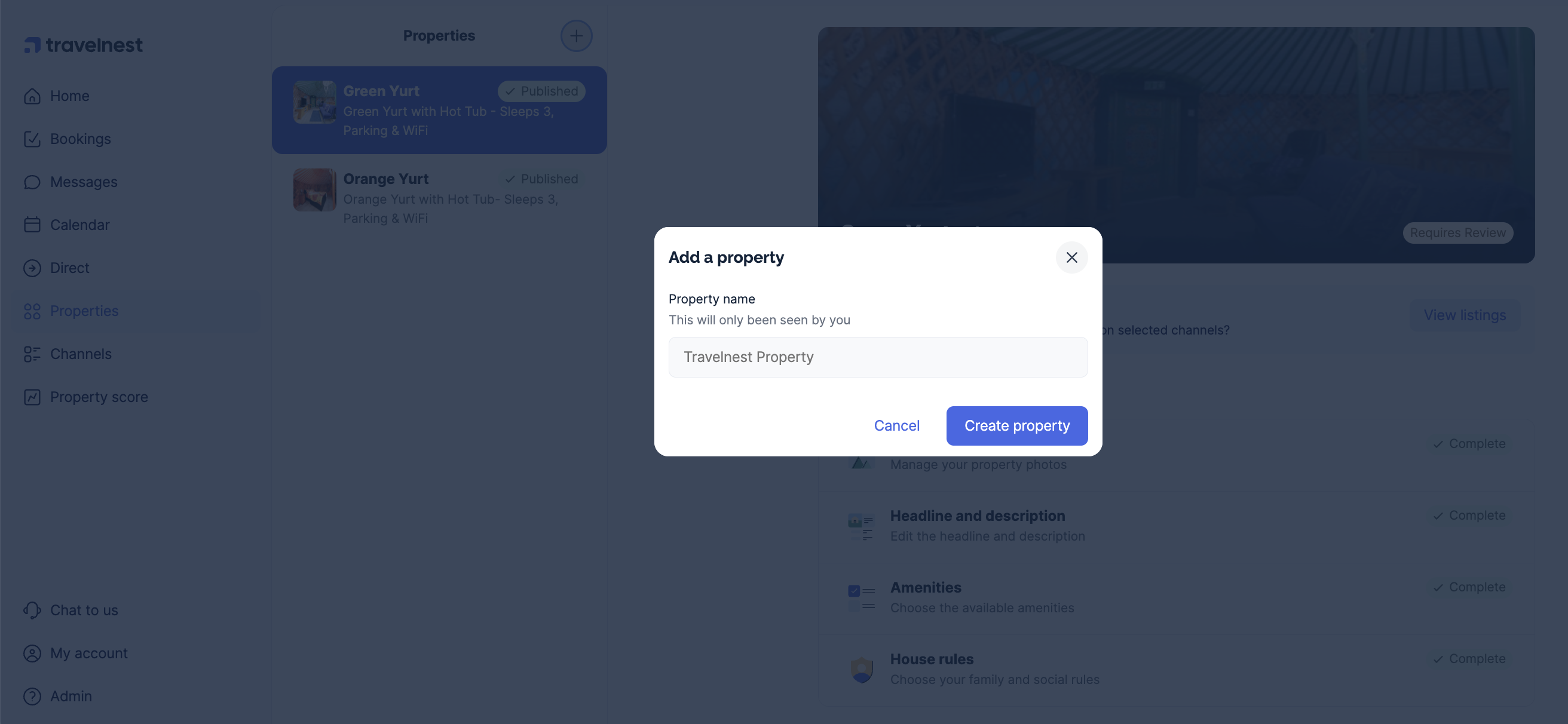 Once created, you will need to input your additional property's details just as you did when you first signed up with Travelnest.